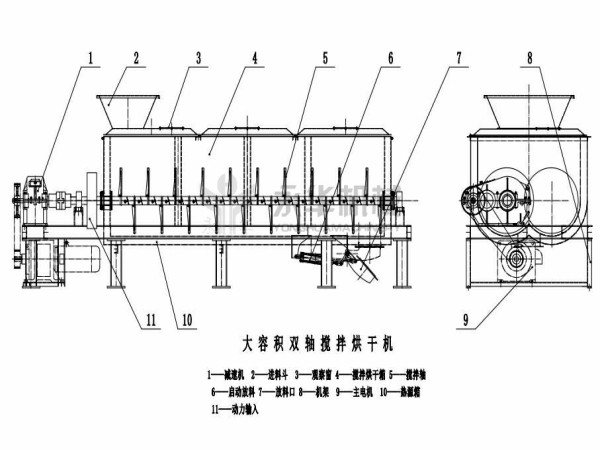 1 殼體主要由板材及型鋼構(gòu)成,在制造廠內(nèi)焊接成形,并與其他部件組裝在一起,是雙軸攪拌機(jī)的支撐。殼體密封嚴(yán)密,不會有飛灰外揚(yáng)、漏灰的現(xiàn)象。